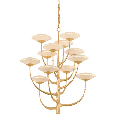 Pluro Chandelier, Vintage Gold Leaf/Bianca Glass