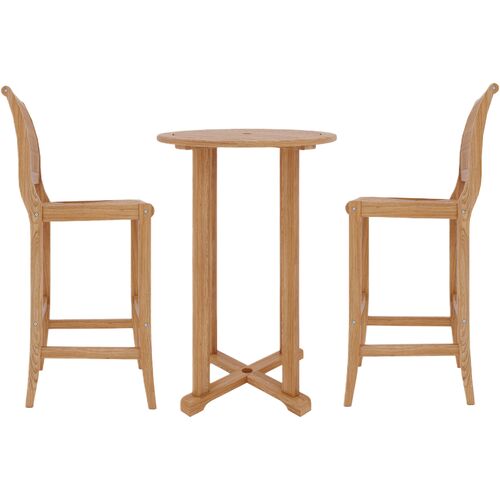 Clemente 3-Piece Round Teak Outdoor Bar Height Dining Set, Natural
