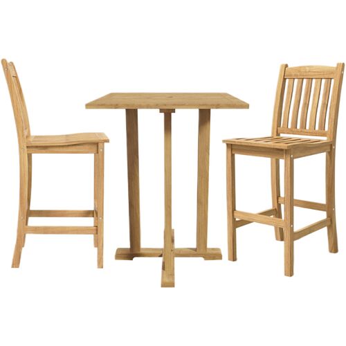 Michelle 3-Piece Square Teak Outdoor Bar Height Dining Set w/ Chairs, Natural