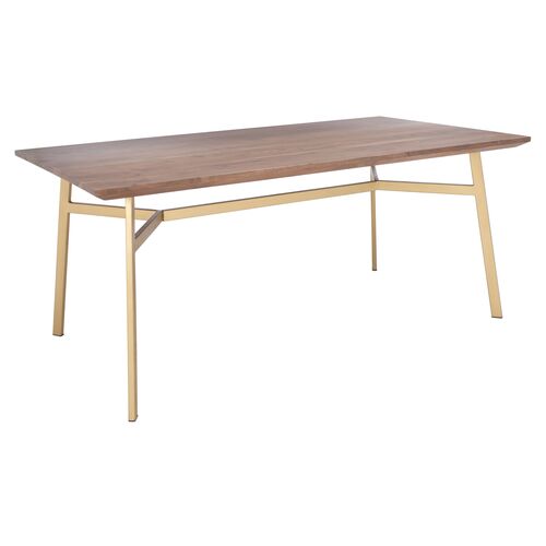 Lilou 90" Rectangular Dining Table, Light Honey Oak/Brushed Gold