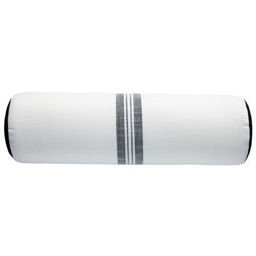Frances 8x25 Outdoor Bolster Pillow, White/Black Pinstripe