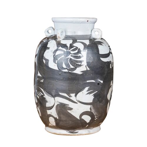 16" Four Loop Handle Jar Twisted Flower Motif, Black