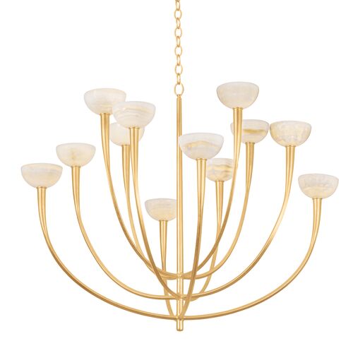Ezra Woven Abaca Chandelier, Natural/Patina Gold Leaf