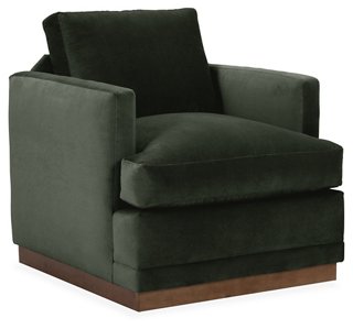Marlowe Swivel Club Chair, Forest Velvet