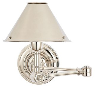 Larabee Double Swing-Arm Sconce, Polished Nickel