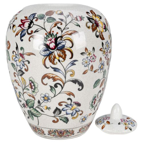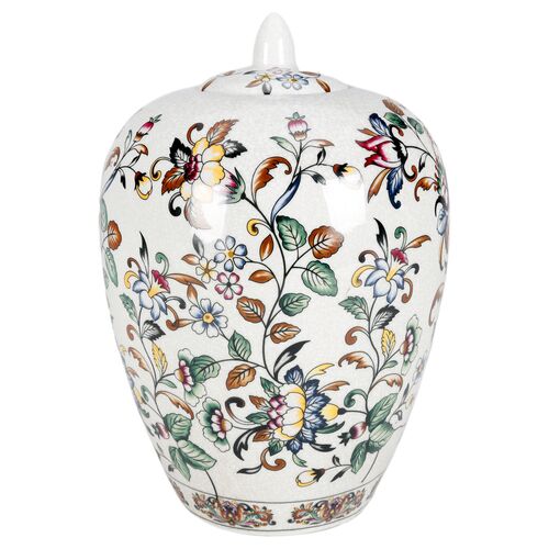 10" Floral Ginger Jar, Yellow/Blue