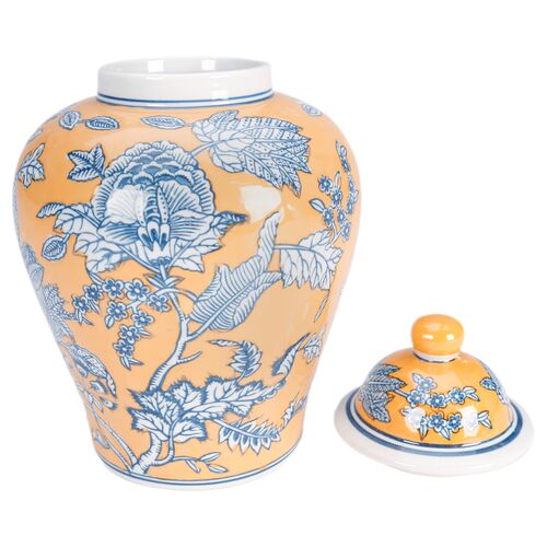 10" Floral Ginger Jar, Yellow/Blue