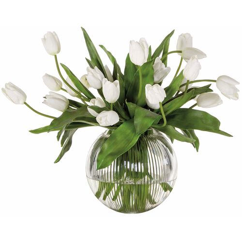 24" French Tulip Arrangement in Glass Ball, Green
