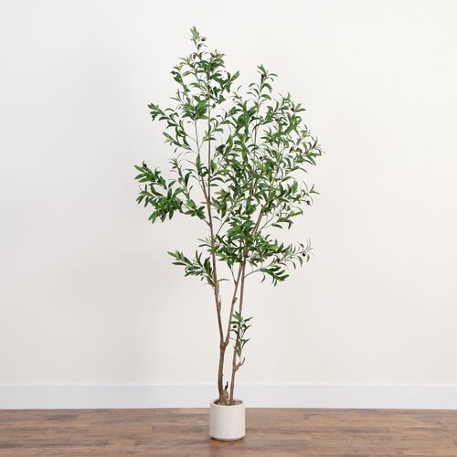 7ft Faux Minimalist Olive Tree, White Decorative Planter