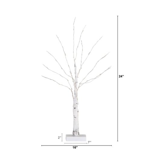 S/2 24in. Pre-Lit Artificial White Birch Branches