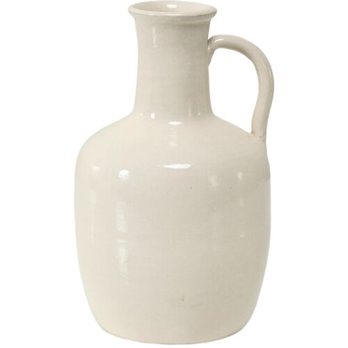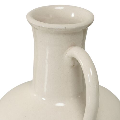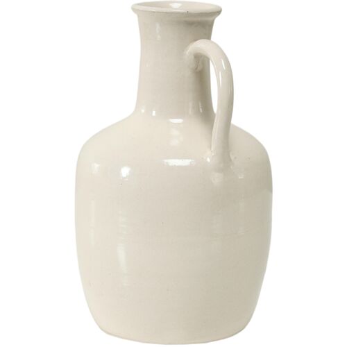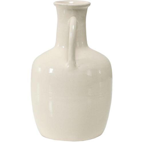 13"H Off White Porcelain Bottle Vase with One Decorative Handle