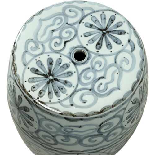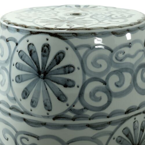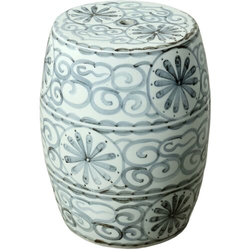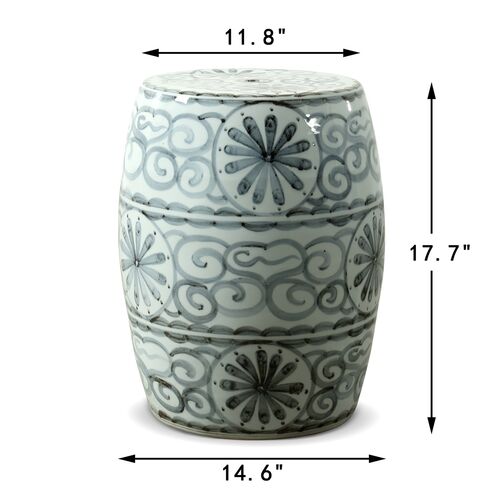 17"H Soft Sky Blue Porcelain Garden Stool with Flower Motif, Blue/White