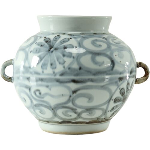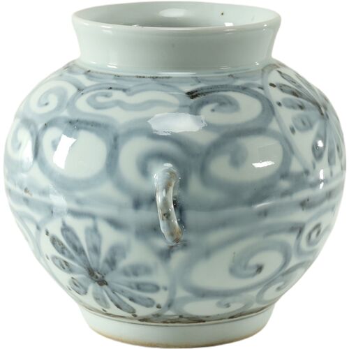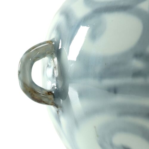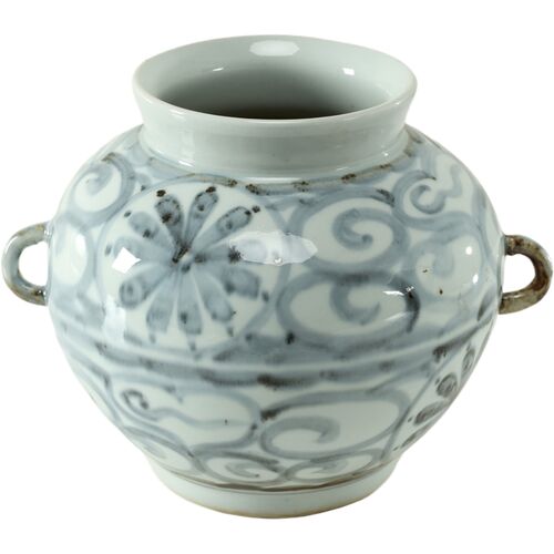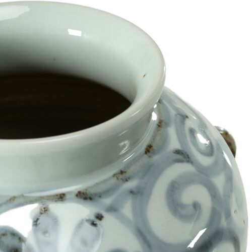 13"H Subtle Blue and White Porcelain Globe Vase w/ 2 Handles
