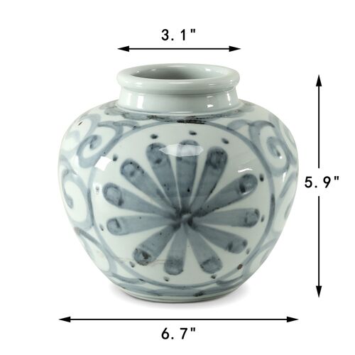 6"H Subtle Blue and White Porcelain Vase with Flower Motif