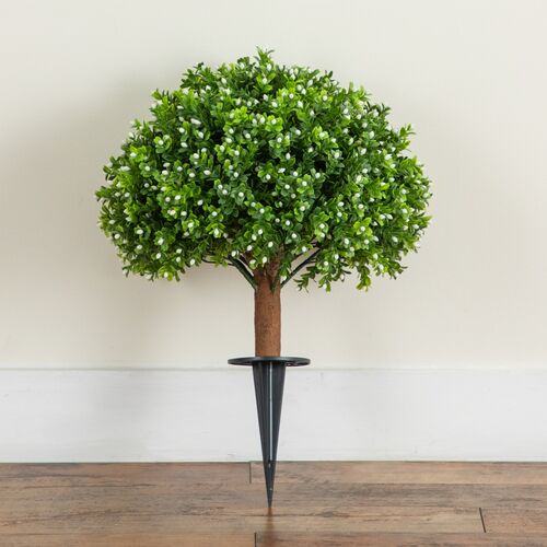 23in. Indoor/Outdoor Flowering Boxwood Topiary with Ground Stake