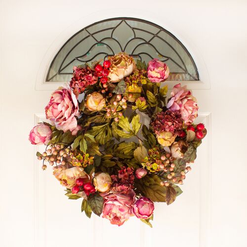24in. Peony Hydrangea Wreath