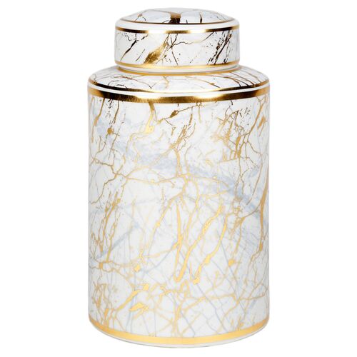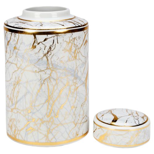 Faux Marble Cylindrical Jar, Gold