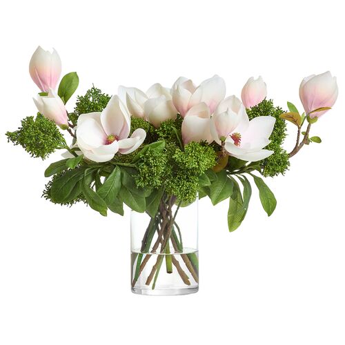 17" Magnolia and Sedum Silk Flower Arrangement, Pink