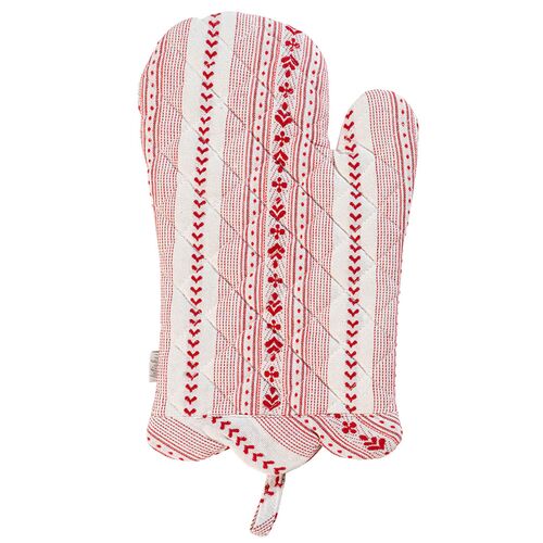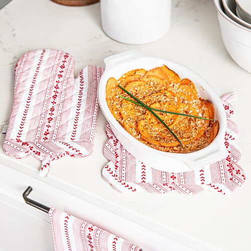 2-Pc Villa Stripe Oven Mitt and Pot Holder Set, Red