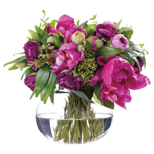 10.5" Ranunculus and Peony Silk Flower Arrangement, Purple