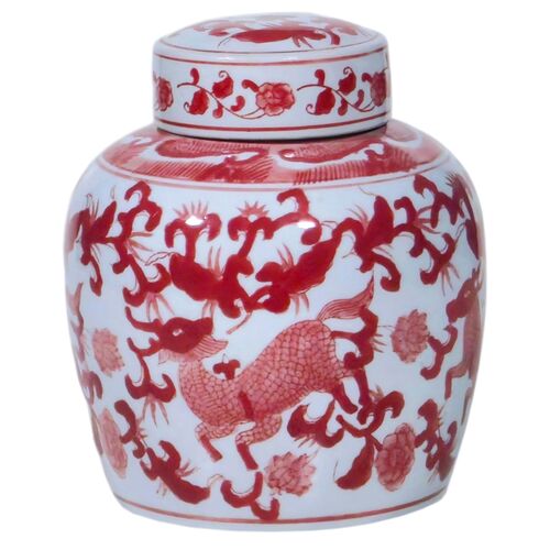 15 Inch Ginger Jar with Deer Design, Red
