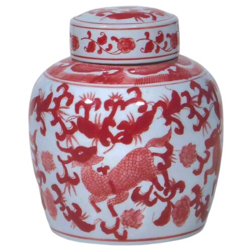 20" Chinoise Exotique Jar, Multi/Brass