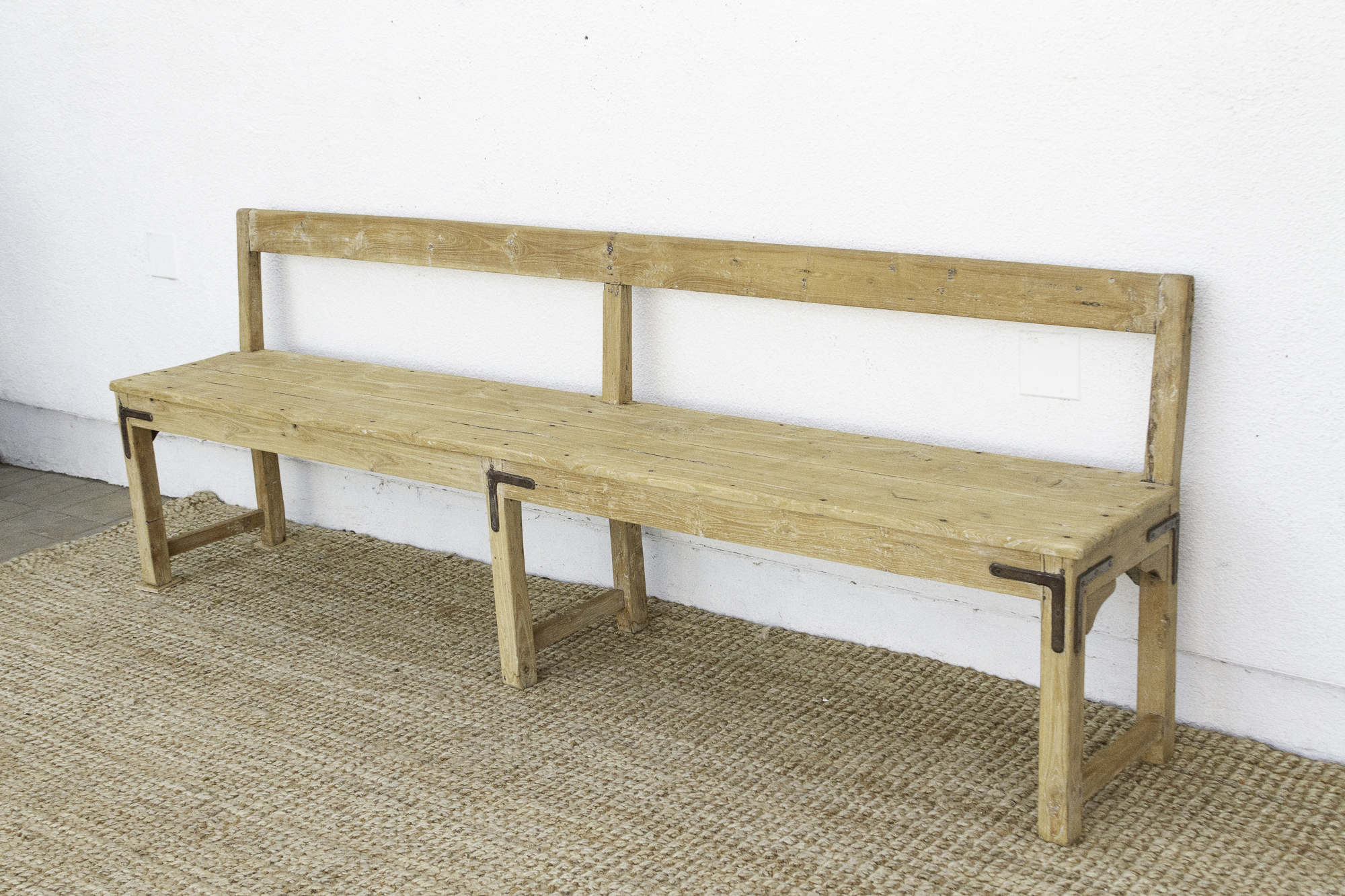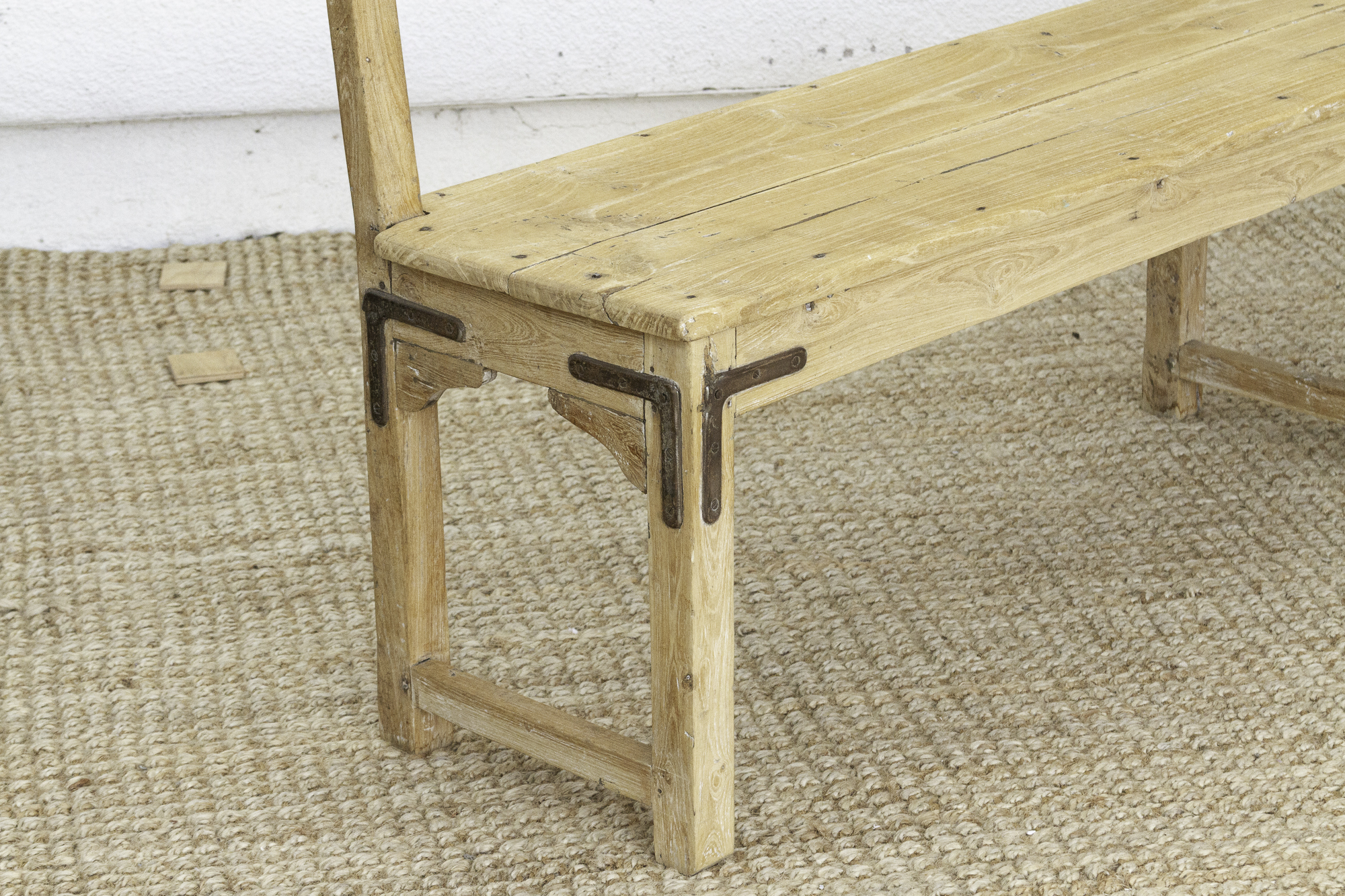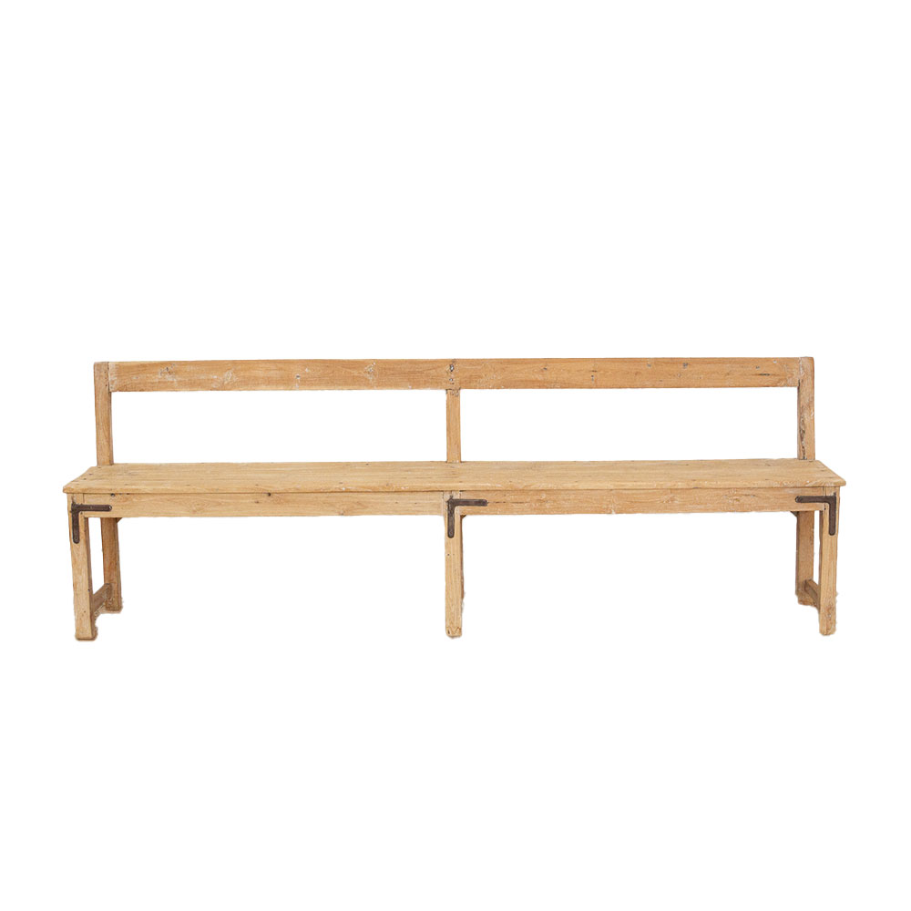 1860's French Bleached Wood Long Bench