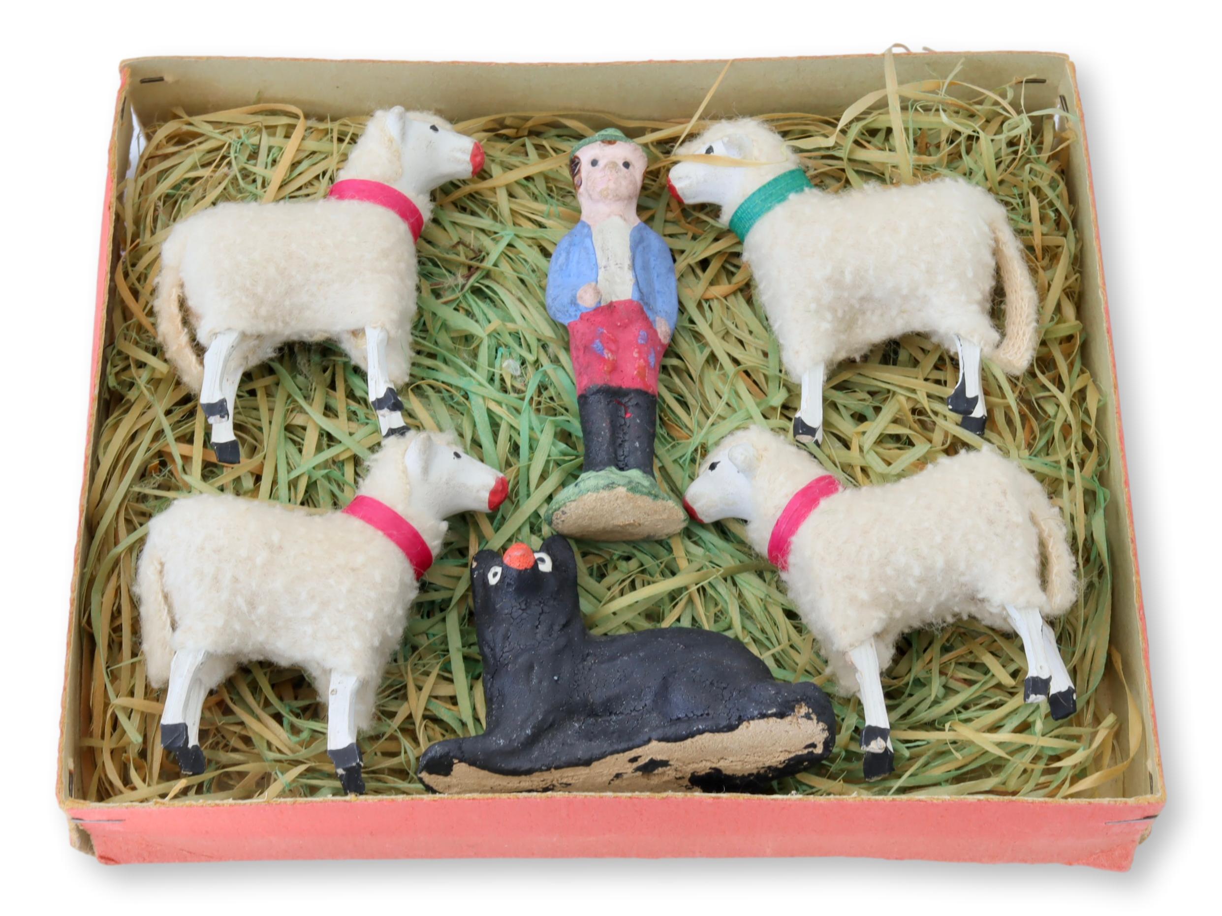 1920s German Matchstick Sheep w/ Shepard