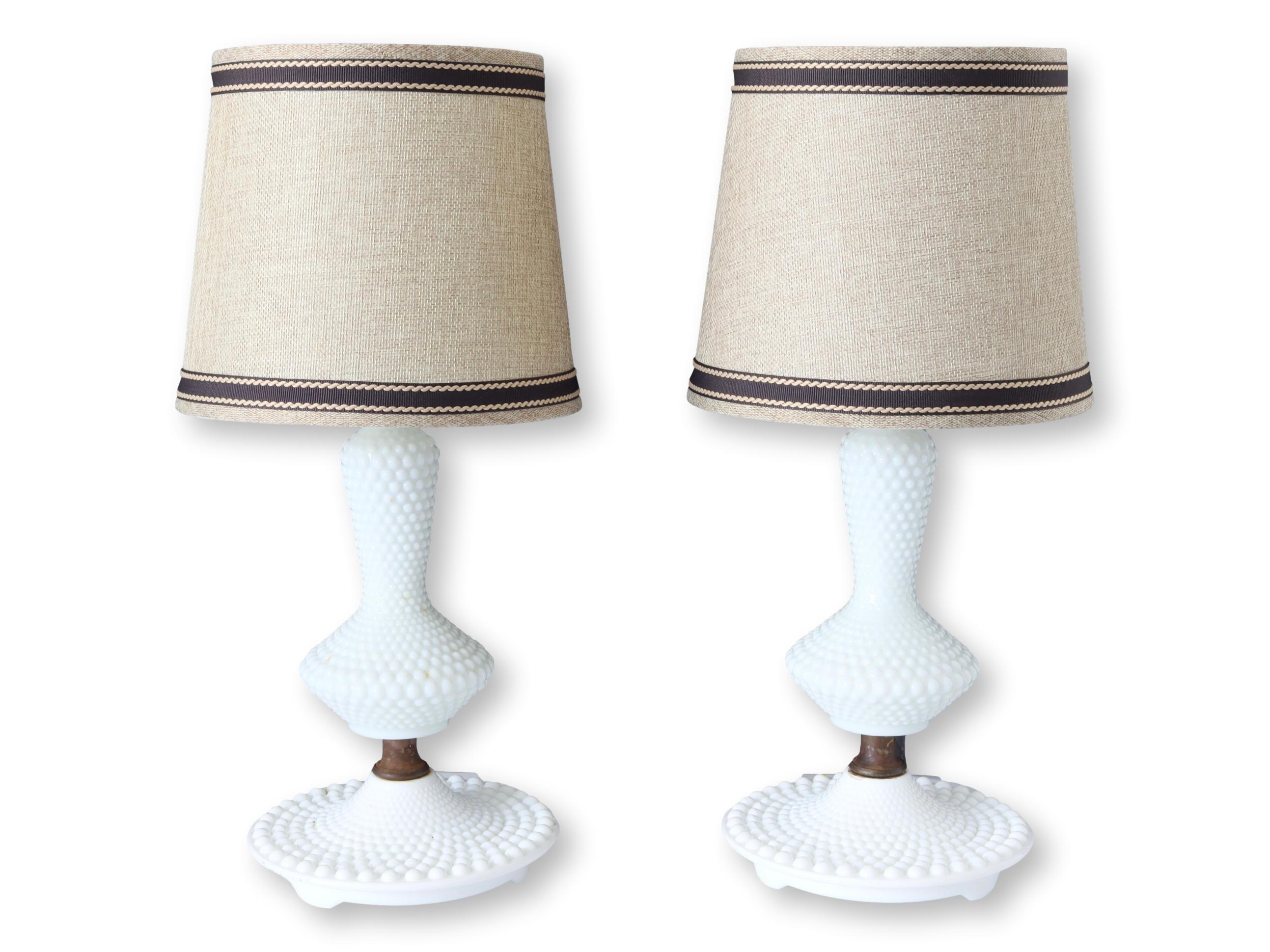1950s Hobnail Milk Glass Boudoir Lamps