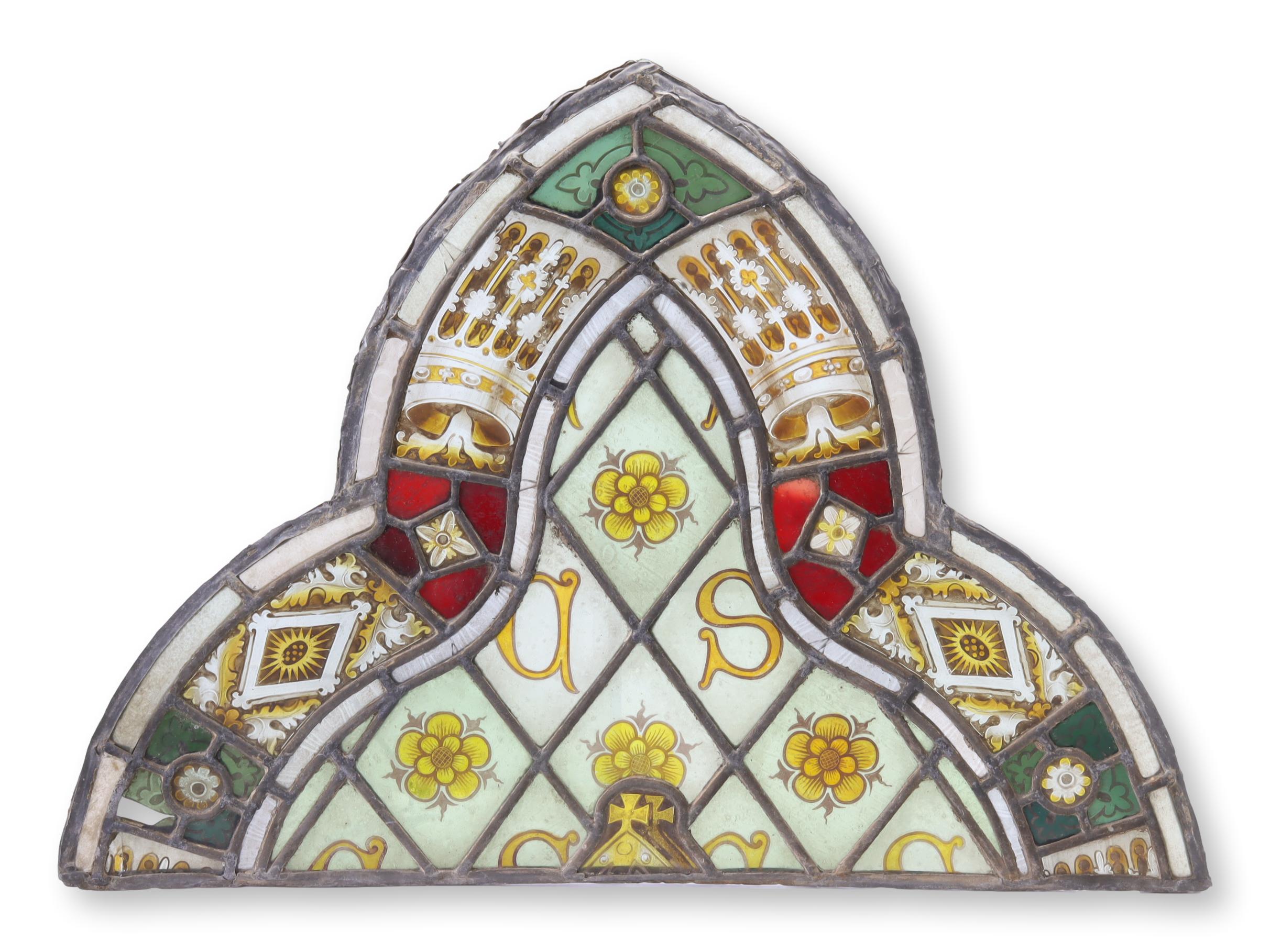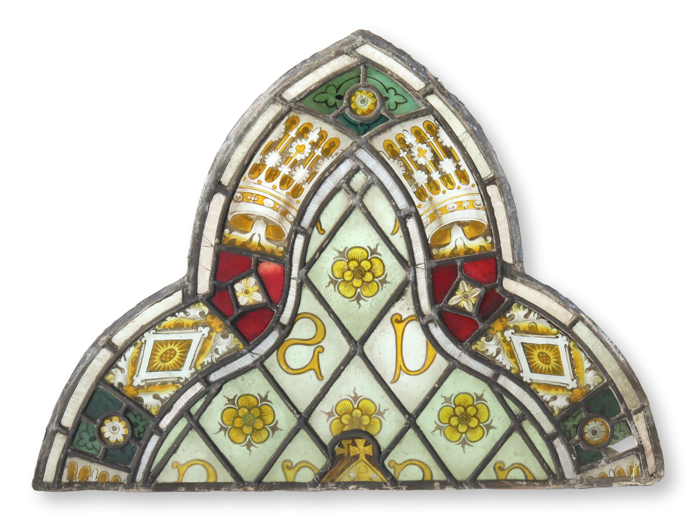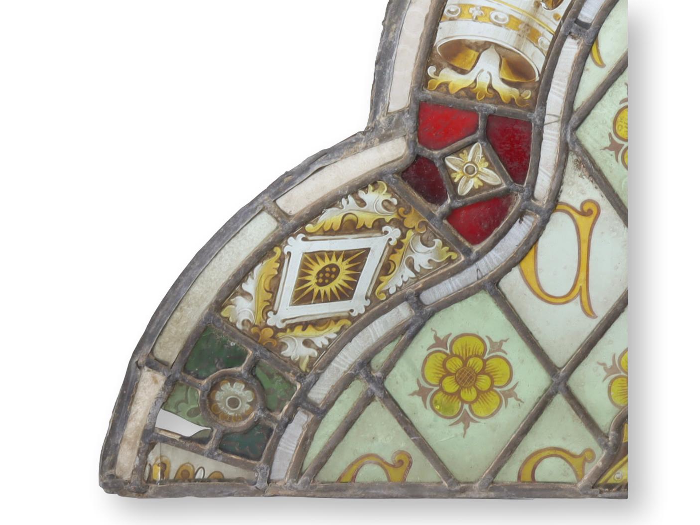 18th-C. English Tudor Rose Stained Glass
