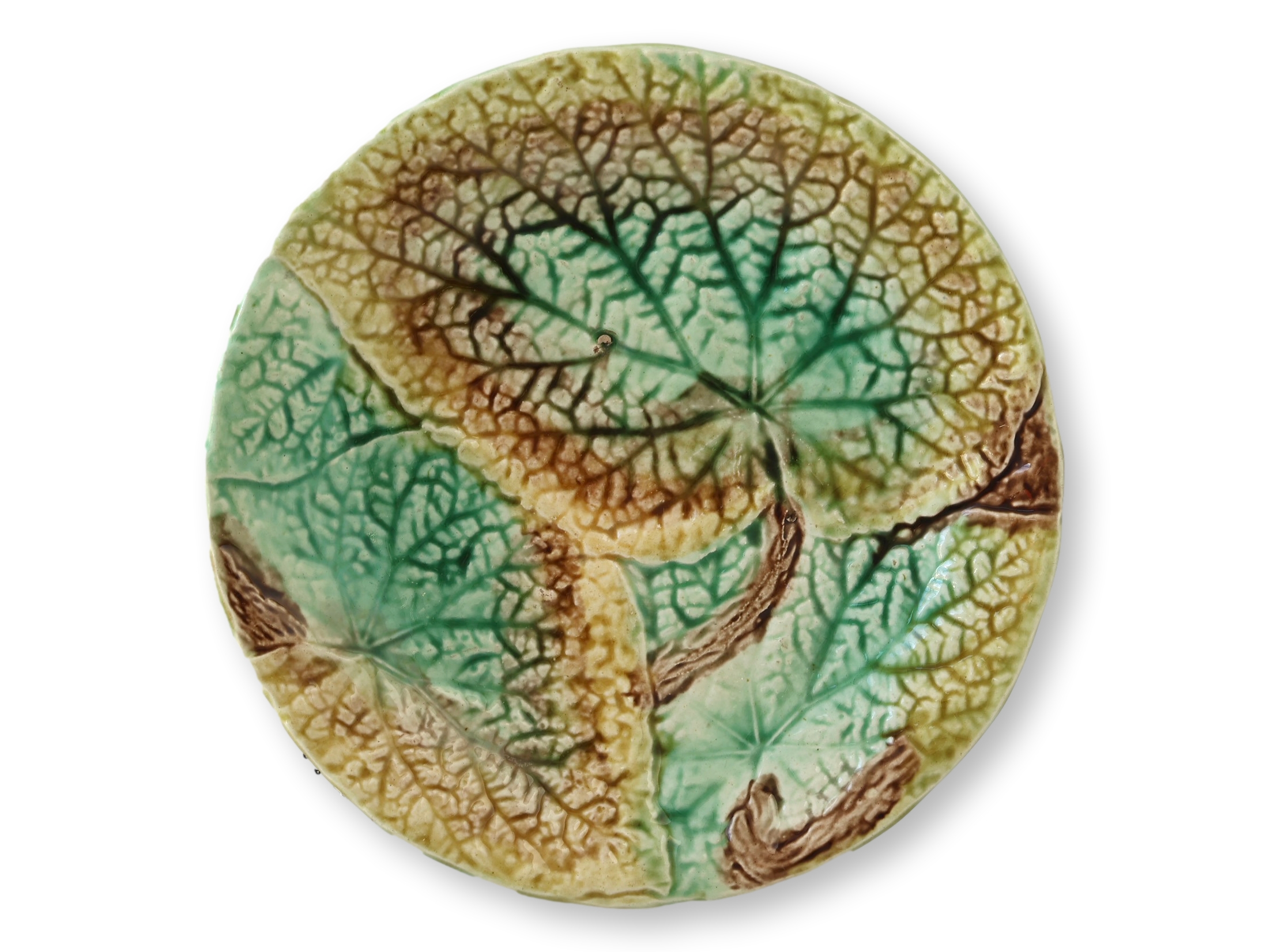 19th-C. English Majolica Begonia Plates