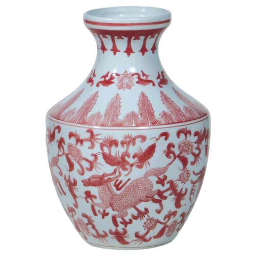 14" Vase with Deer Design, Red
