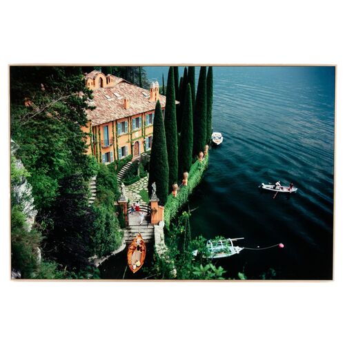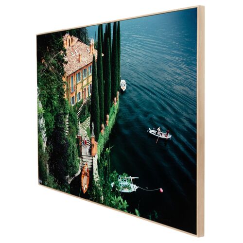 48" x 48" A Nice Spot For Lunch Framed Photograph by Slim Aarons, White Washed Maple Frame