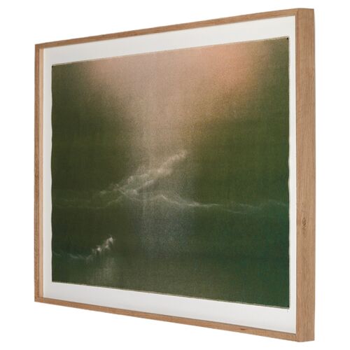 36.5" x 40" Rock Face At Full Moon Artwork by Molly Franken, Rustic Walnut Frame