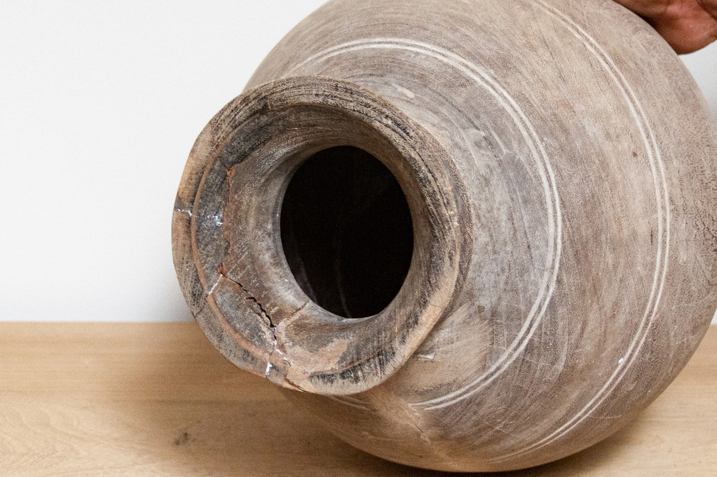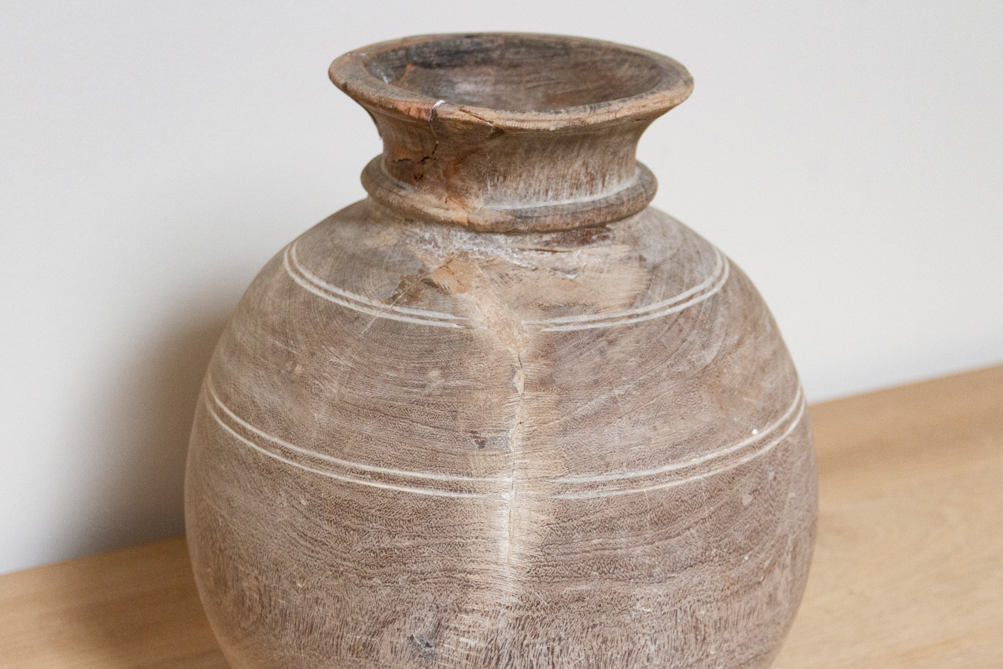 Aged Bleached Wooden Pot-Ita