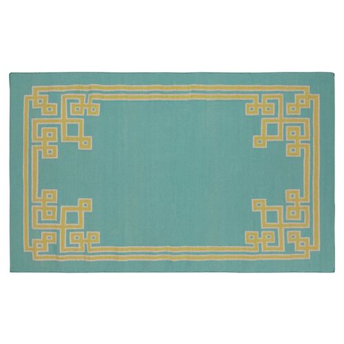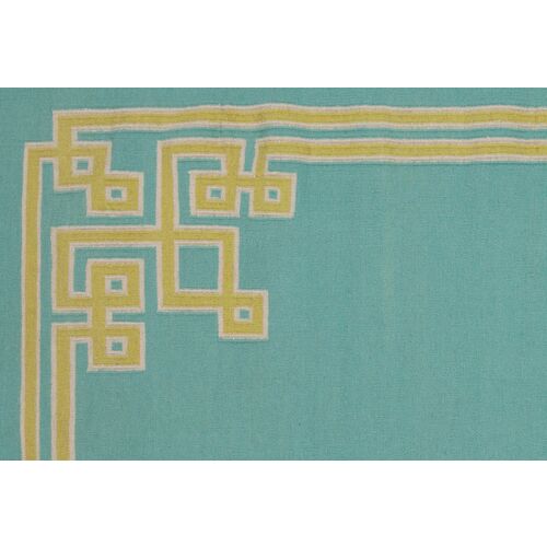 Yarid Flat-Weave Rug, White/Turquoise