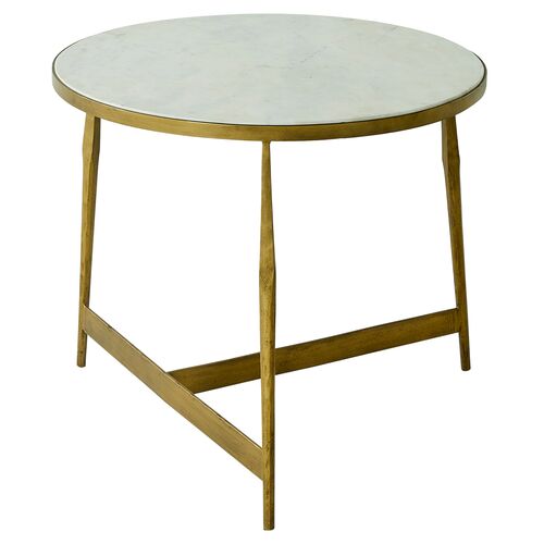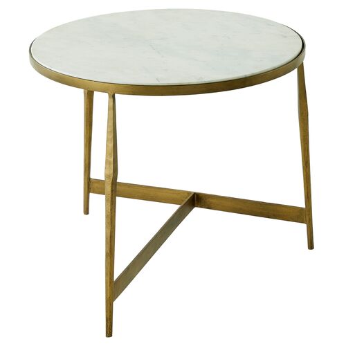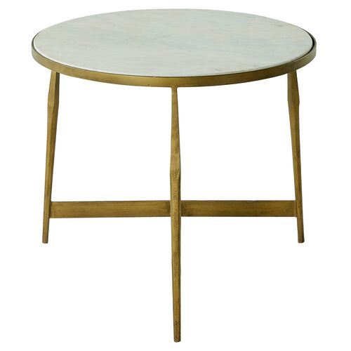 Alana Round Table, Honed White Banswara Marble/Antique Forged Brass