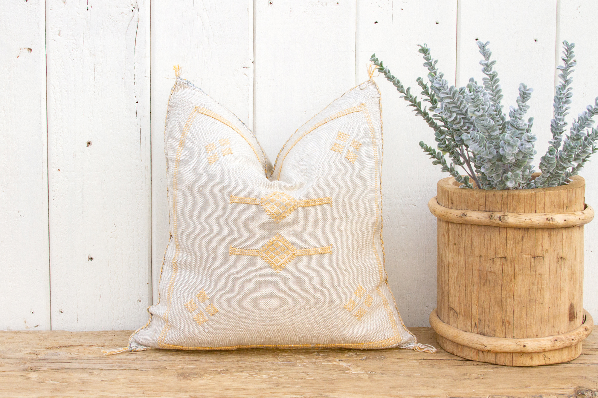 Almond Moroccan Silk Rug Pillow