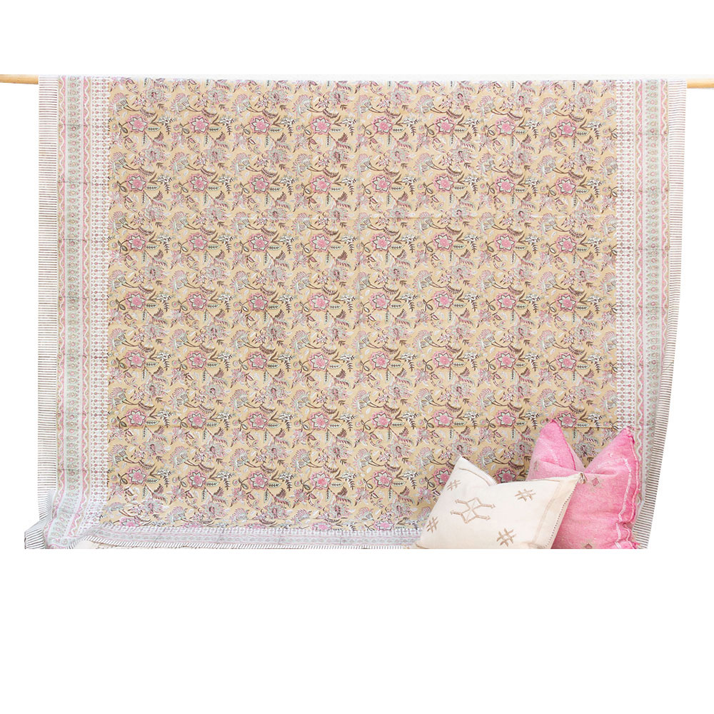 Amber Blossom, Hand Blockprint Coverlet