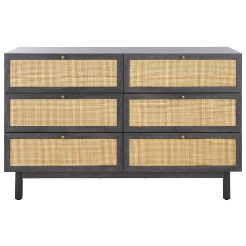 Holly 6-Drawer Dresser, Woven Rush/Smoked Black Ash