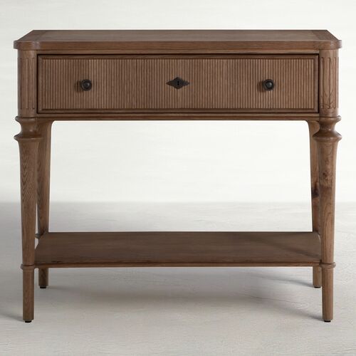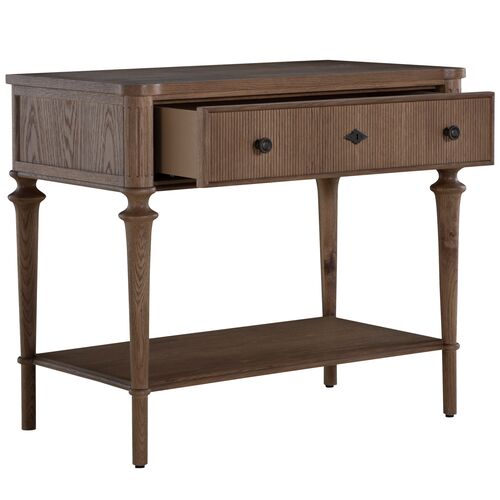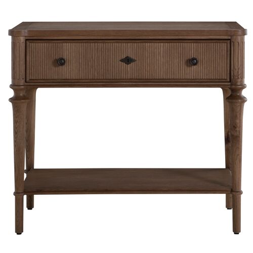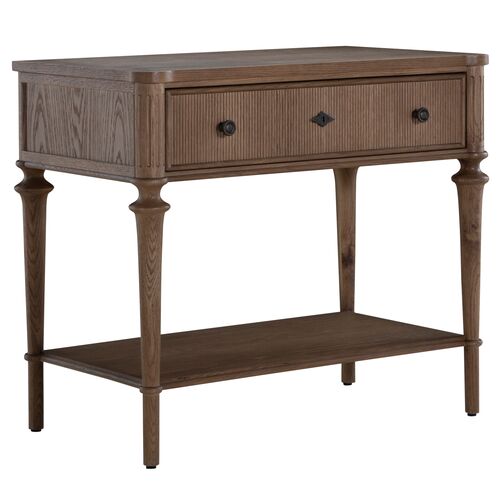 Andrea Nightstand, 1-Drawer, Satin Oak/Antique Bronze