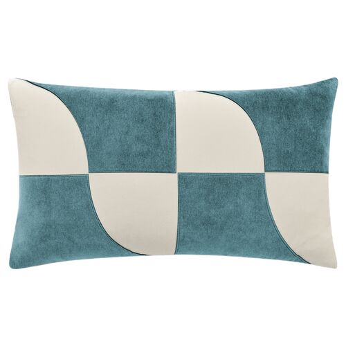 Annabelle 15x26 Colorblock Lasercut Velvet Pillow, Blue/Ivory