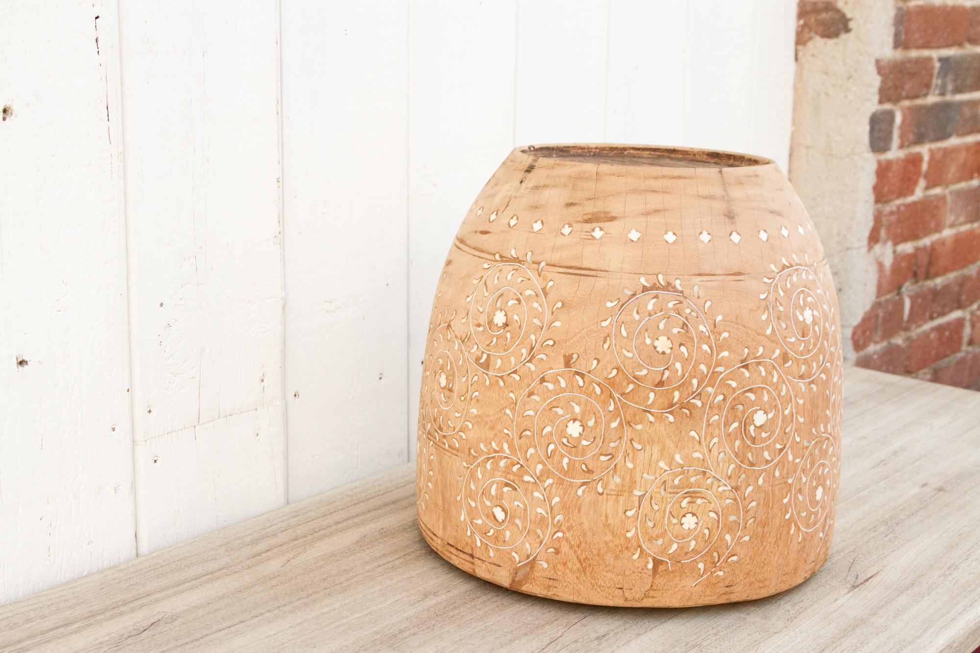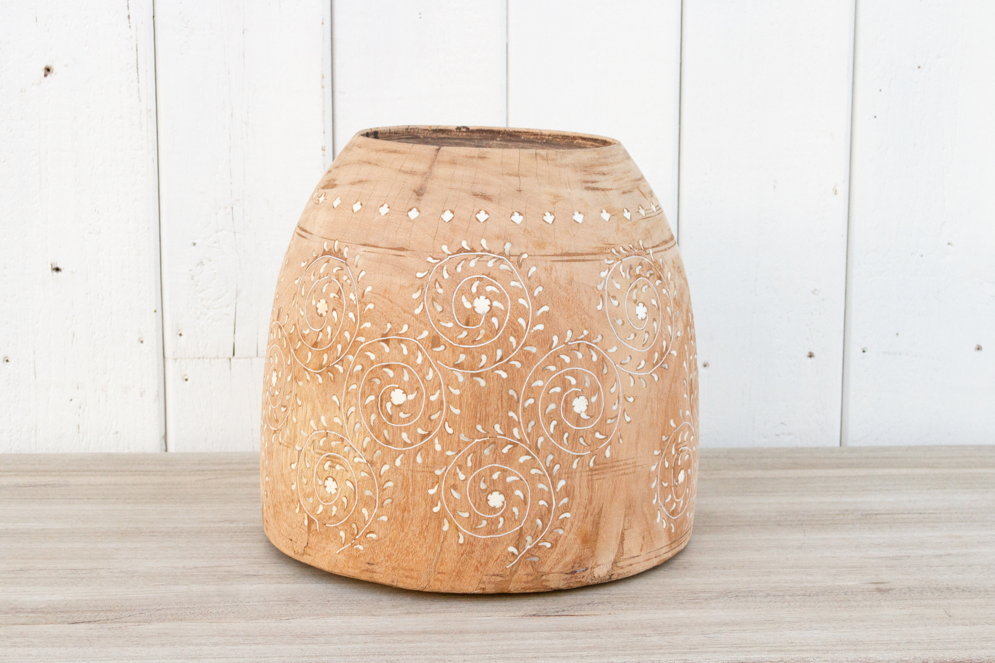 Aged Bleached Wooden Pot-Ita