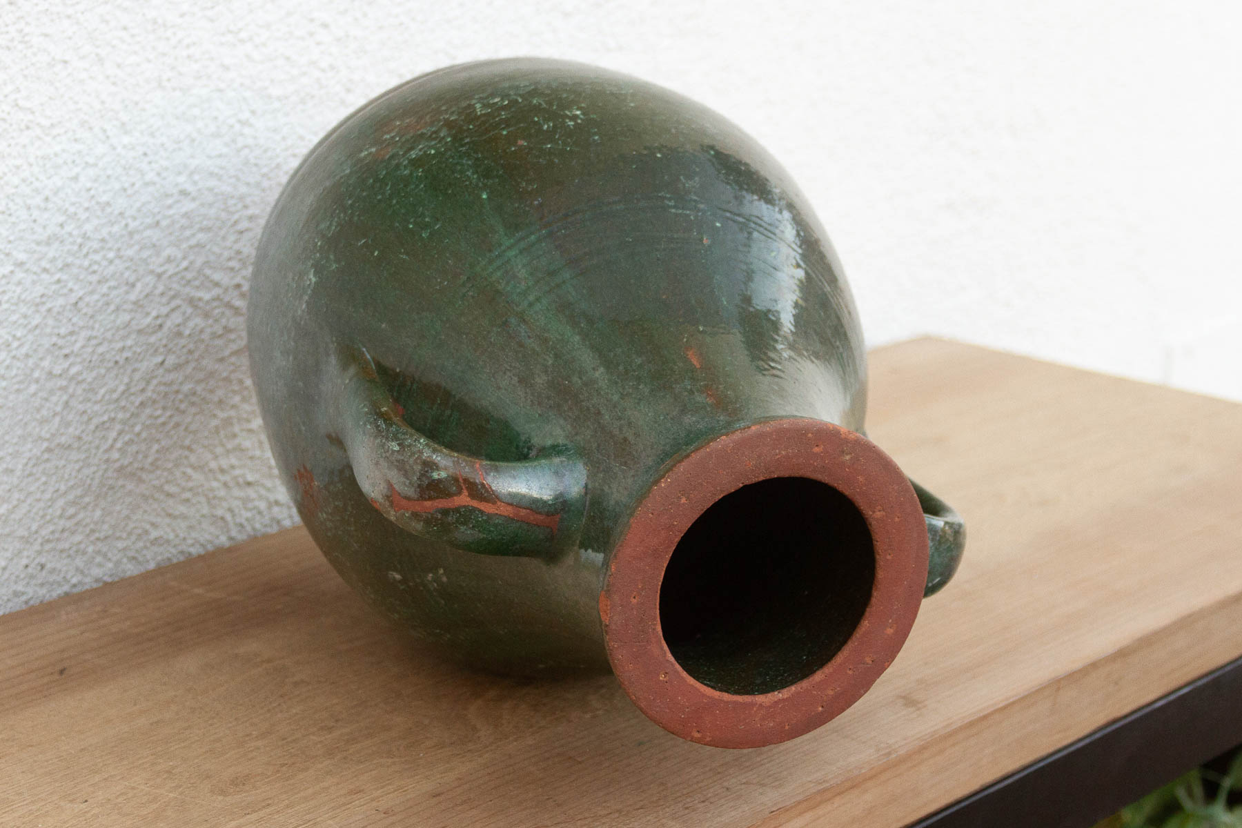 Antique French Green Glazed Olive Jar