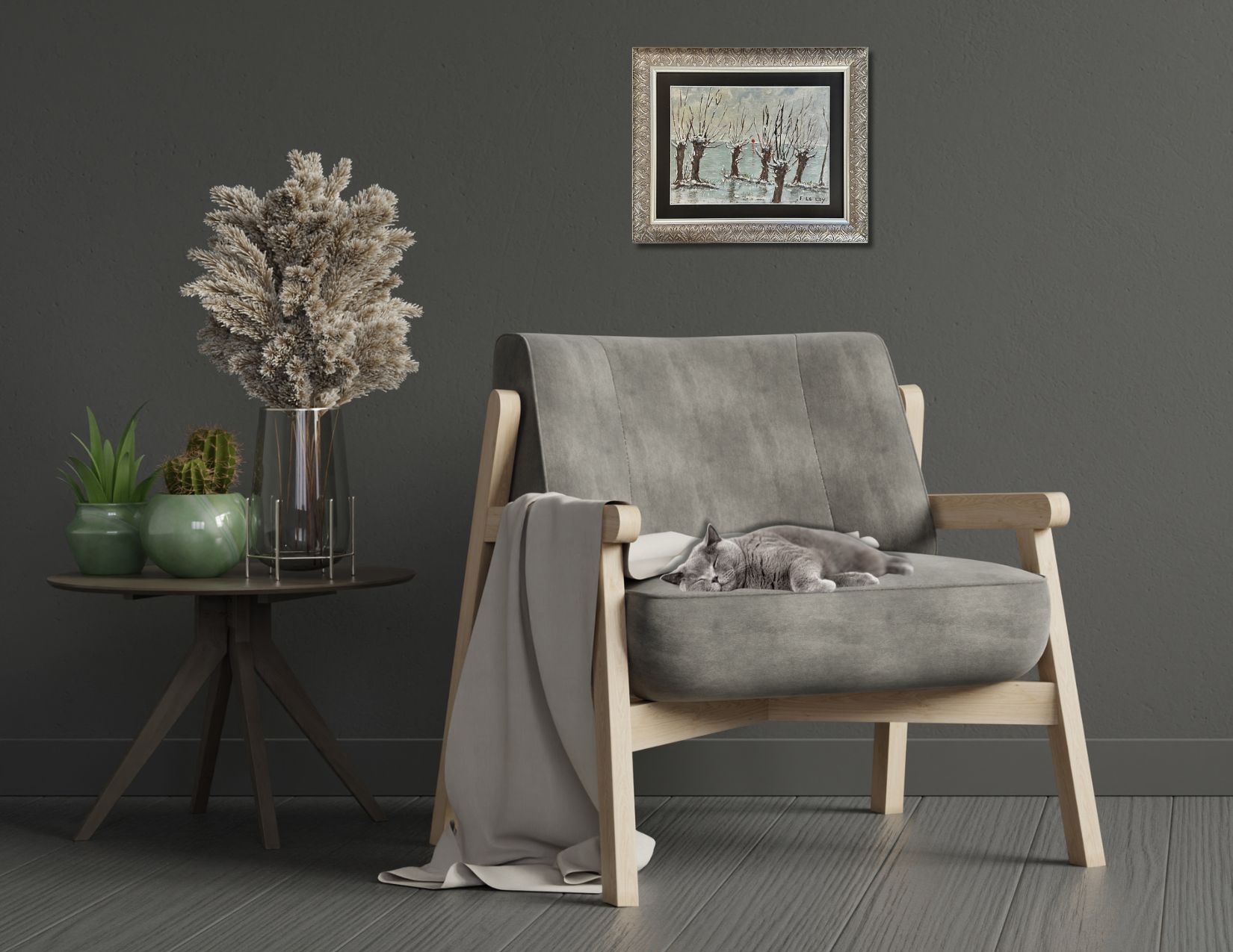 Antique French Winter Forest Painting