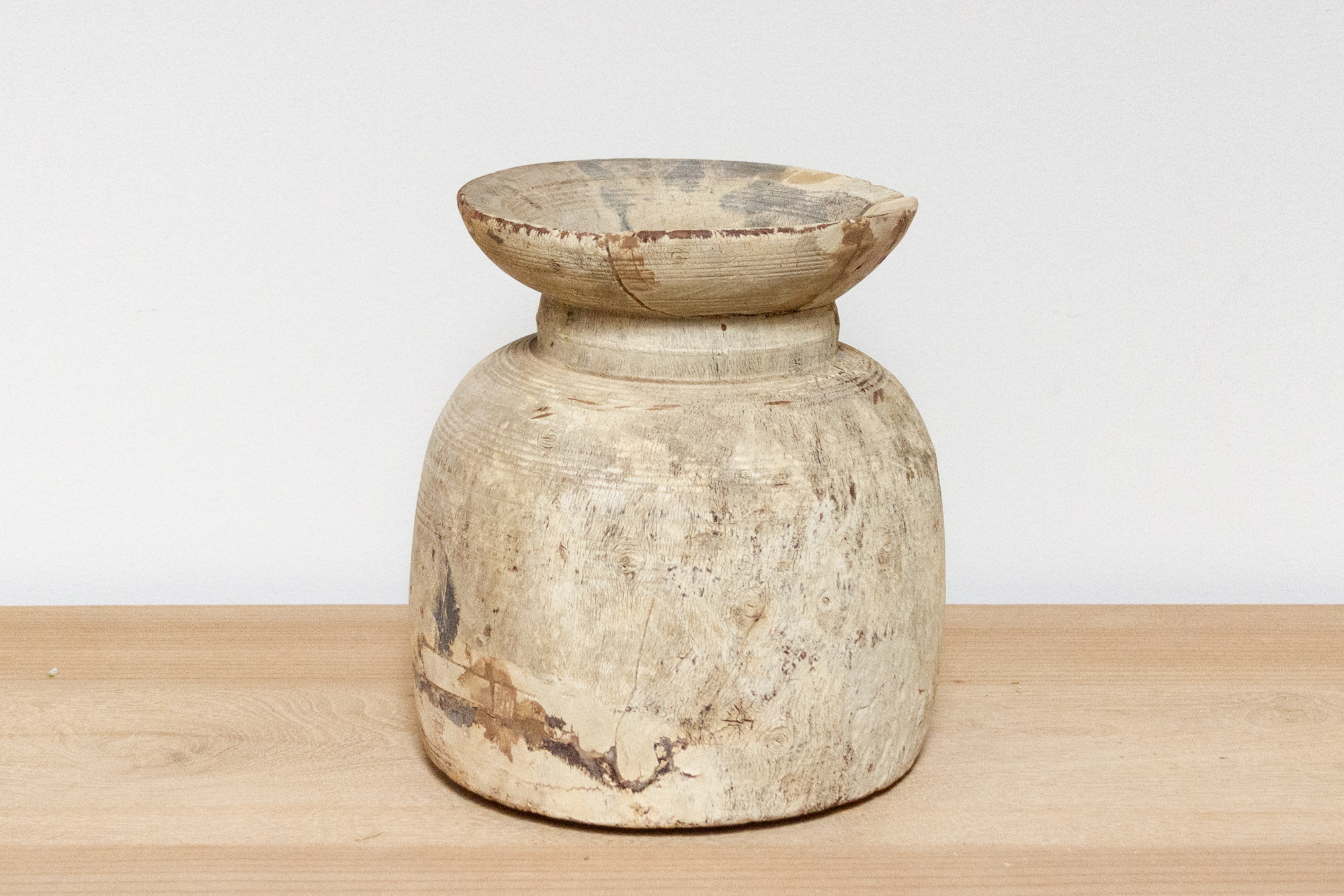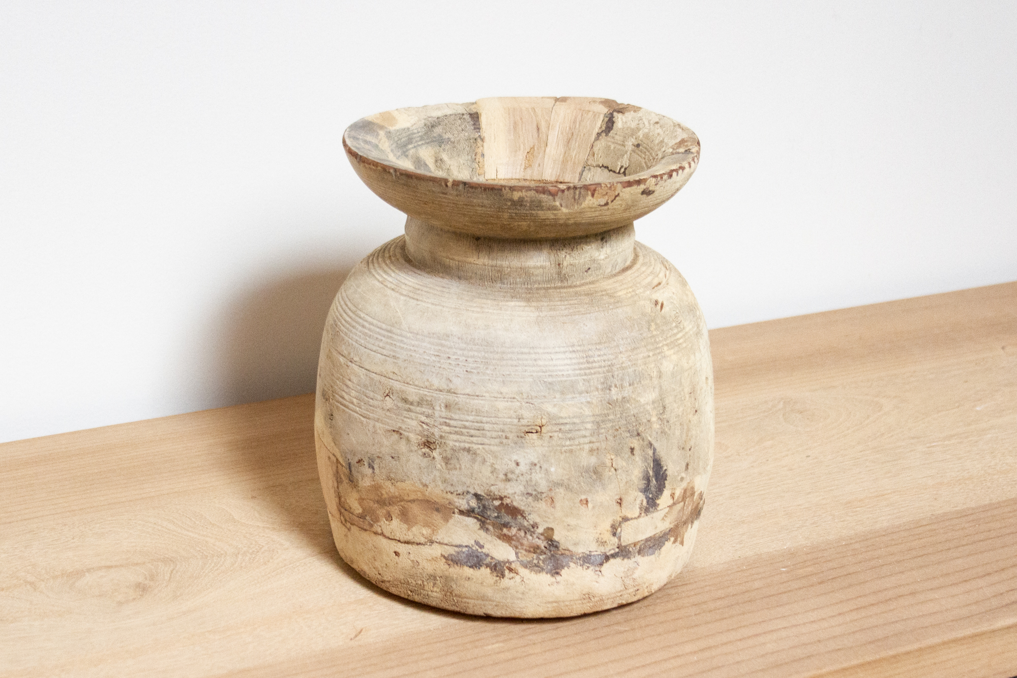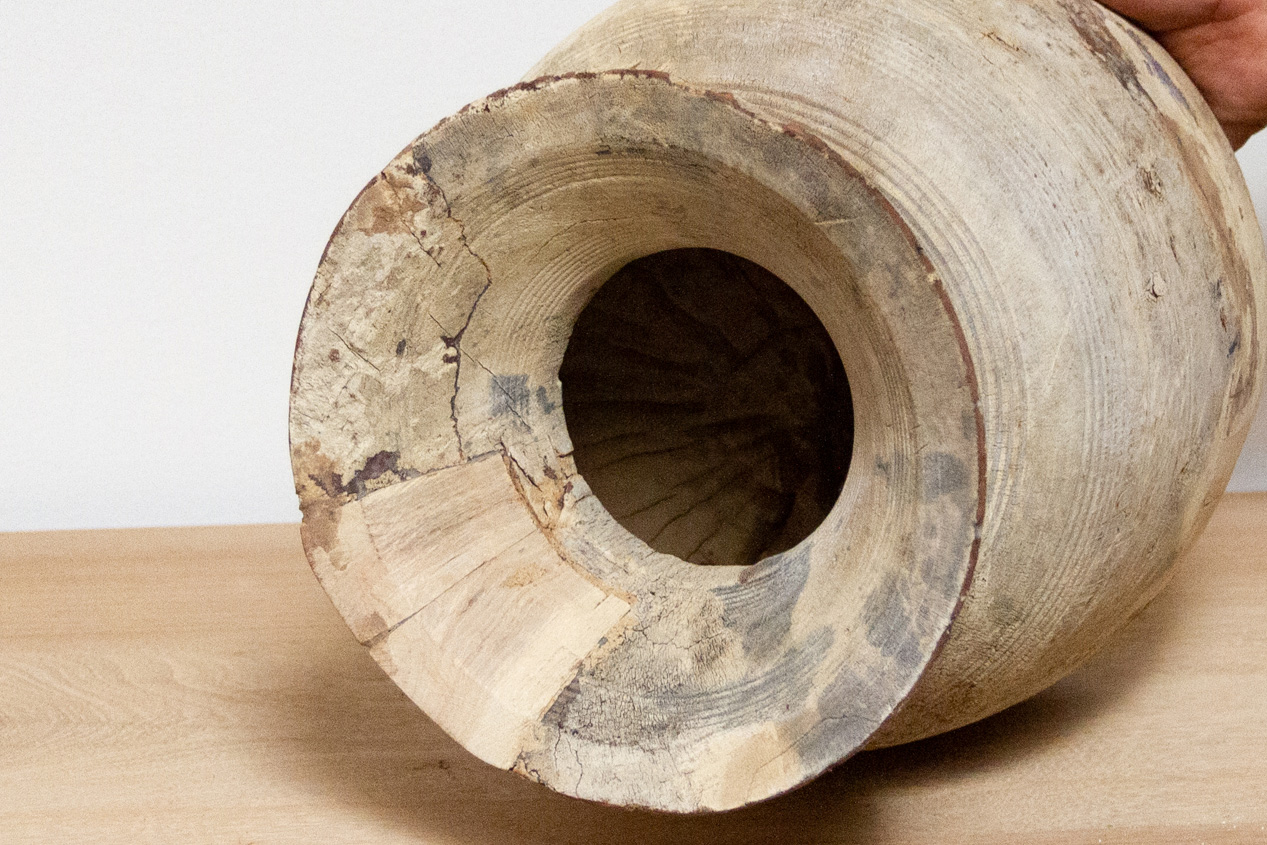 Aged Bleached Wooden Pot-Ita
