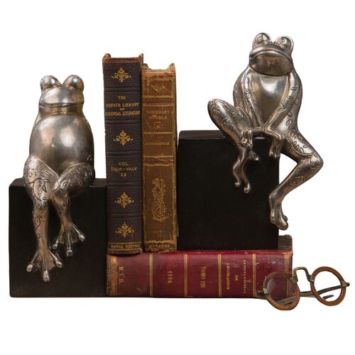 Antique Silver Frog Bookends