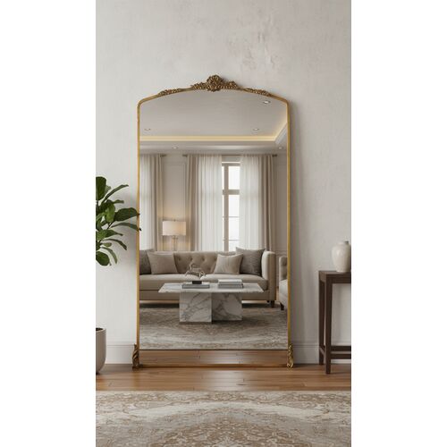 Arabella Ornate Floor Mirror, Antique Gold