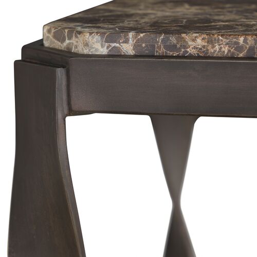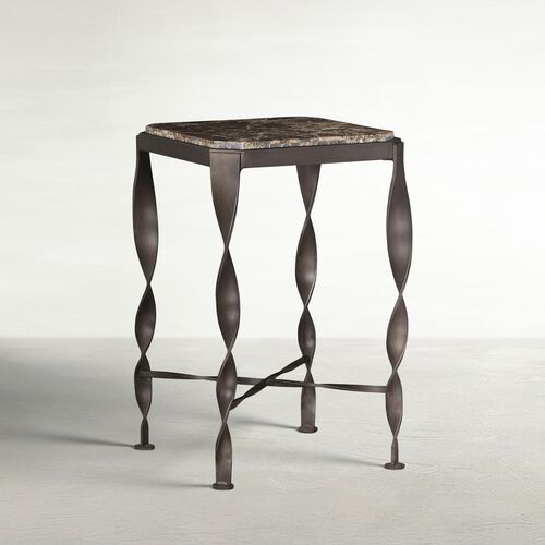 Armand Side Table, Black Forged Iron/Natural Travertine