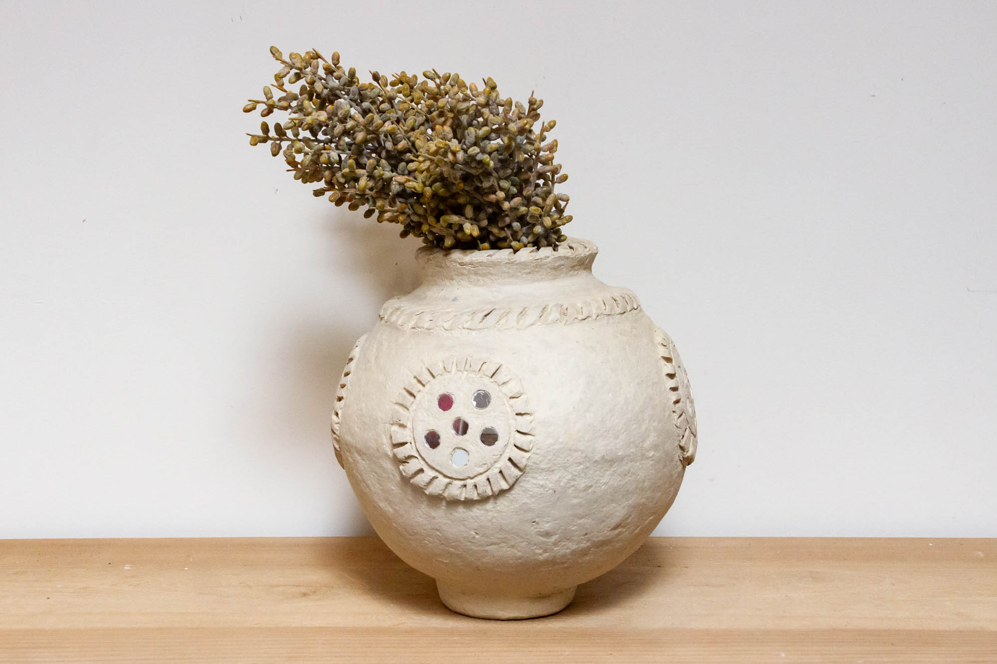 Artisanal White Paper Mache Pot
